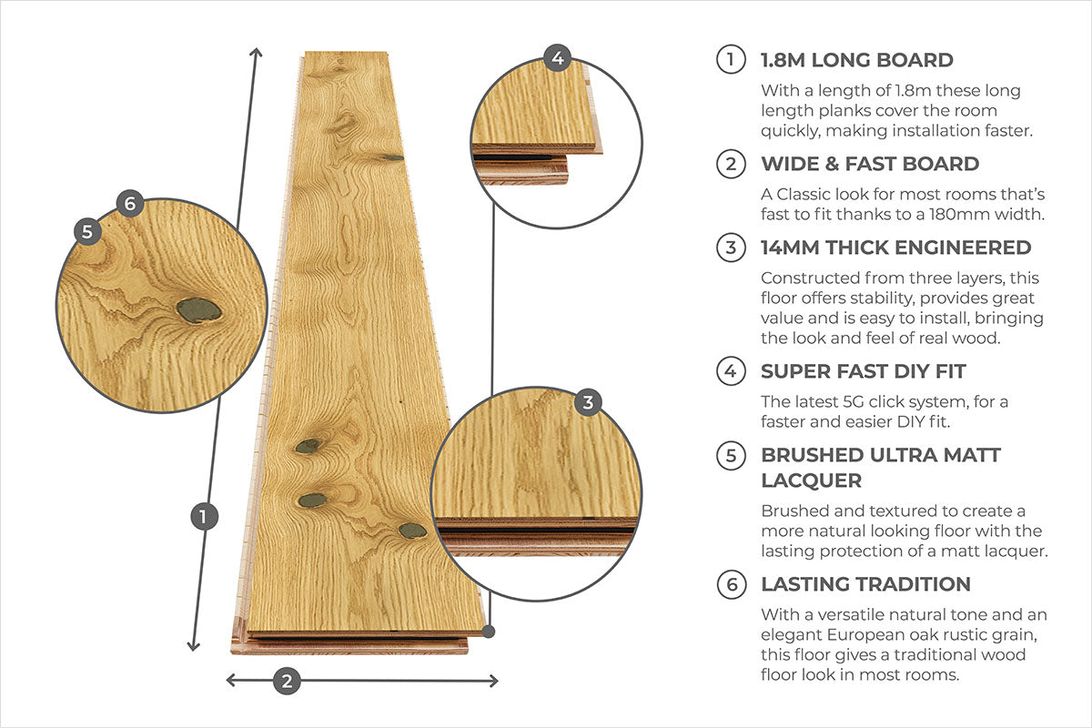 Home Choice Engineered Select Oak 14mm x 190mm Natural Matt Lacquered