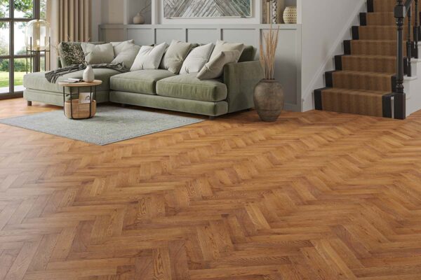 Galleria Professional Solid European Rustic Oak Herringbone Flooring 18mm x 70mm Smoked UV Oiled
