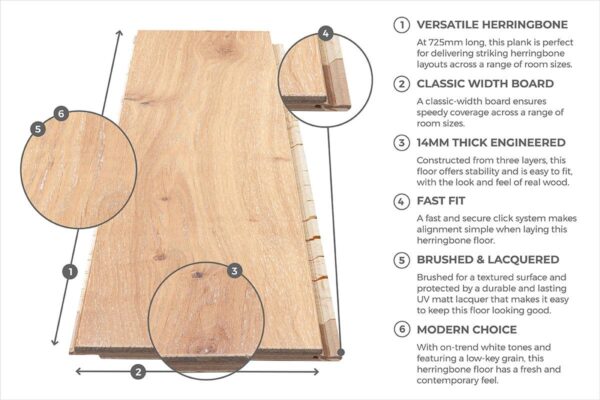 Home Choice Herringbone Engineered European Select Oak Flooring 14mm x 130mm Grissini Lacquered