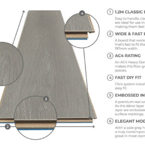 Vacuuming and an occasional damp-mopping is all it takes to keep Series Woods 8mm Laminate Dove Grey Oak looking fantastic, making it a great choice for anyone looking for a low-maintenance, fit-and-forget floor.
